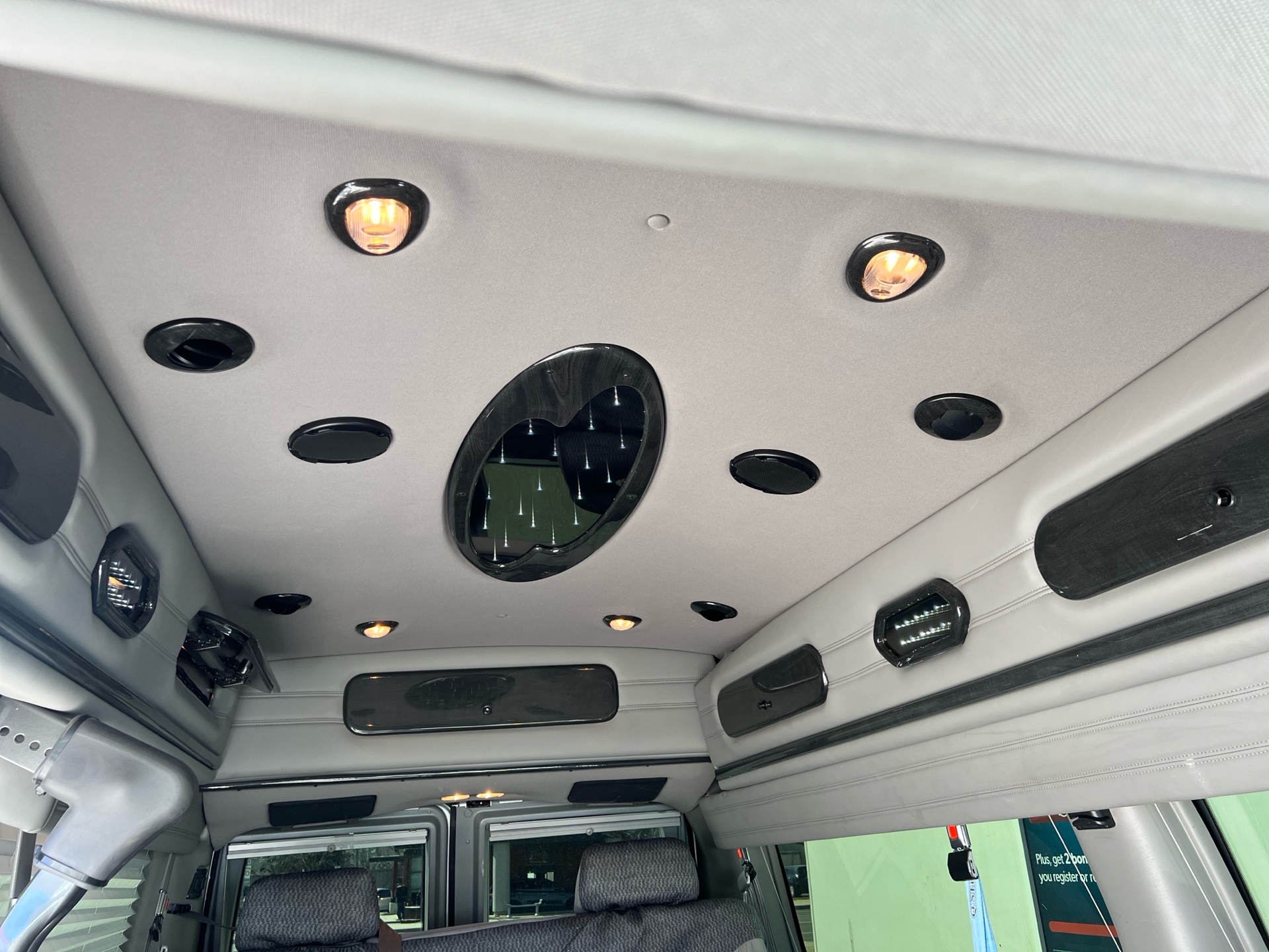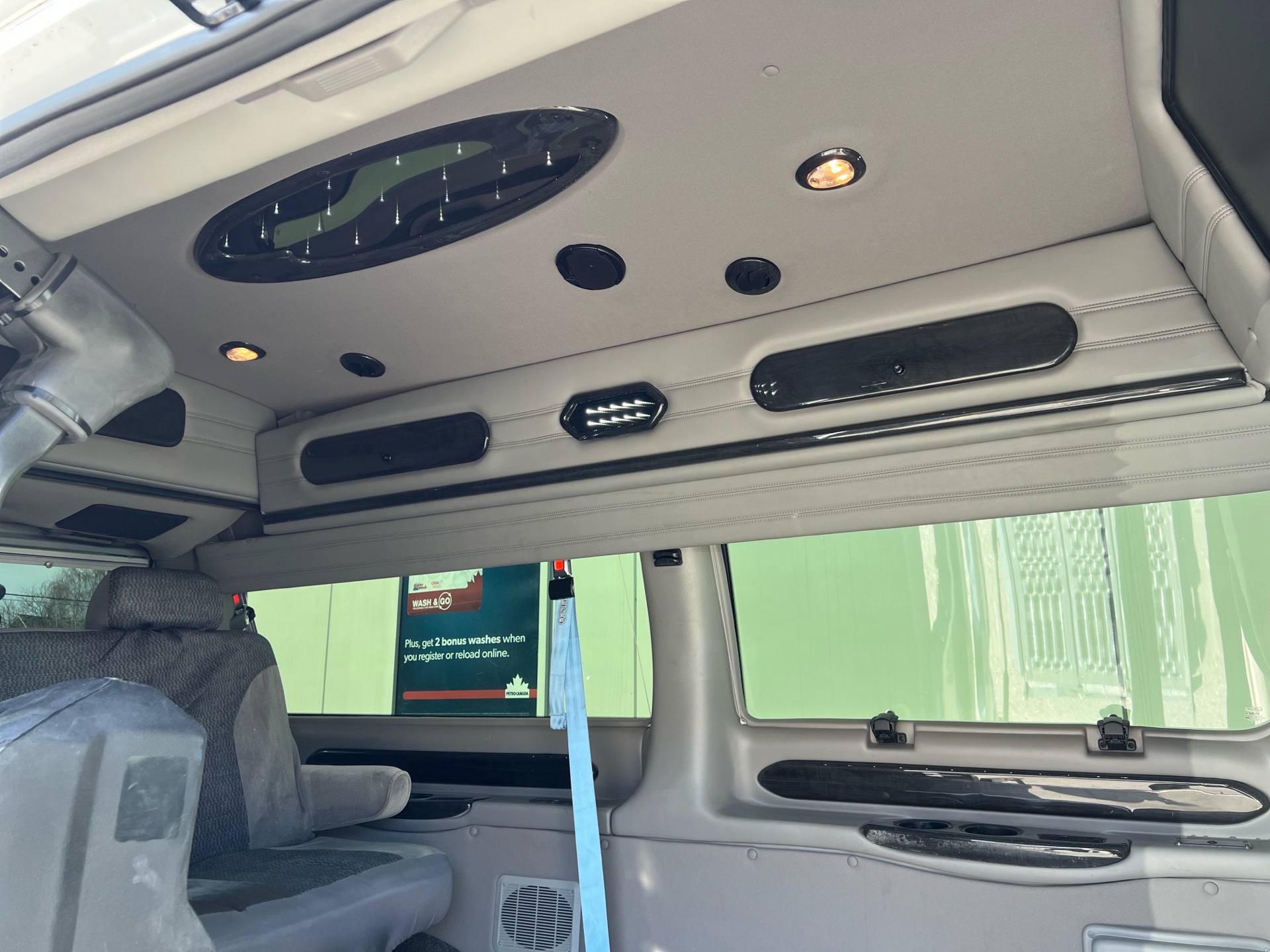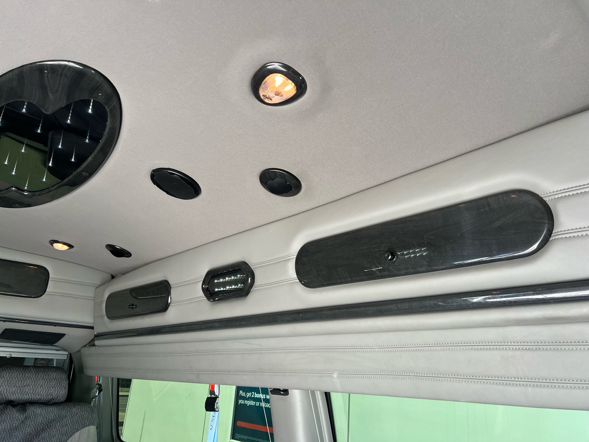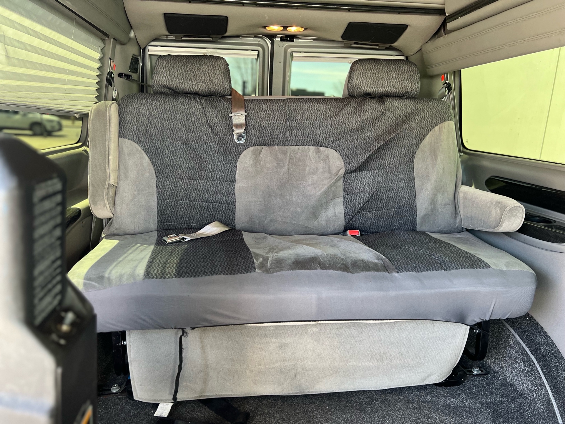 Interior: Plush, upgraded conversion van interior with wood trim and comfort seating