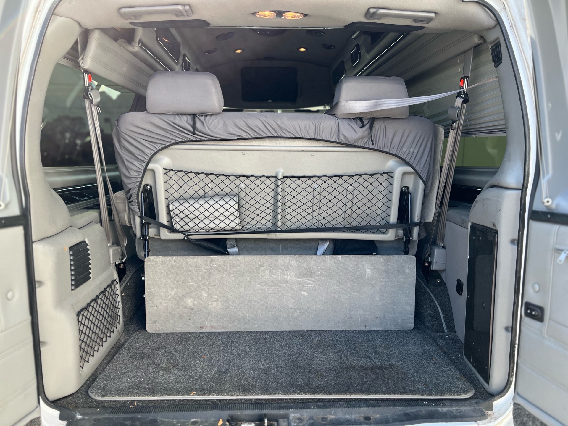 Fold-flat rear bench (bed setup)